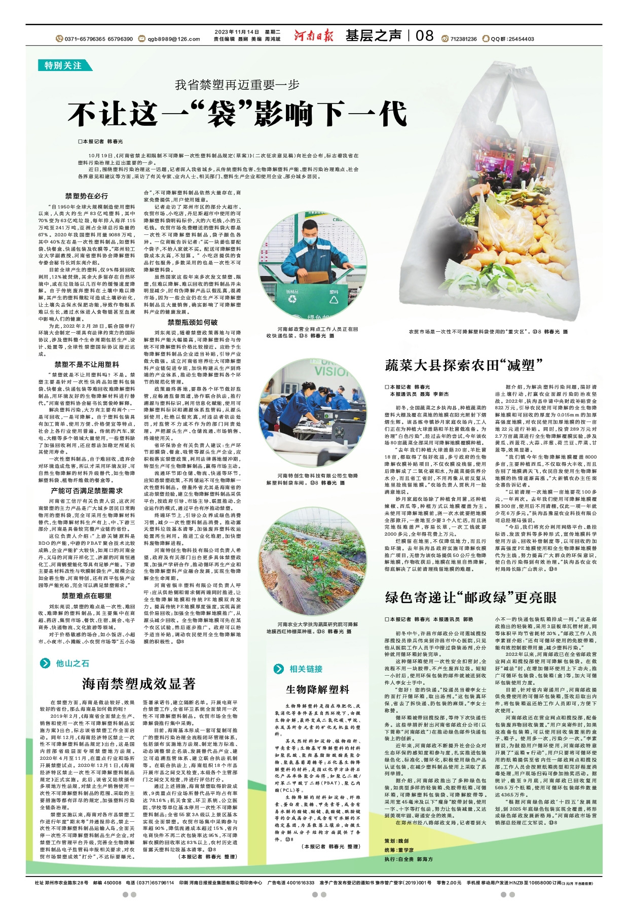 一次性可降解塑料袋、地膜、快遞外包裝、可降解餐盒……如今,該企業(yè)利用玉米、甘蔗渣、咖啡渣等農(nóng)作物制成的可降解塑料制品,暢銷30多個國家和地區(qū)。在國內(nèi),中國郵政、京東、順豐、丹尼斯、大潤發(fā)、美團、唯品會等該企業(yè)重要合作伙伴使用的塑料袋都是“浚縣制造”。