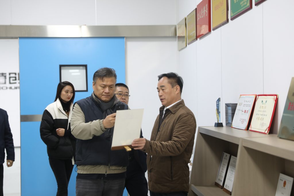 2月9日上午,新疆新業能源化工有限公司副總經理劉國亮、中科新材董事長張昊一行蒞臨河南特創生物科技有限公司考察。河南特創生物科技董事長王金春等公司領導陪同考察。